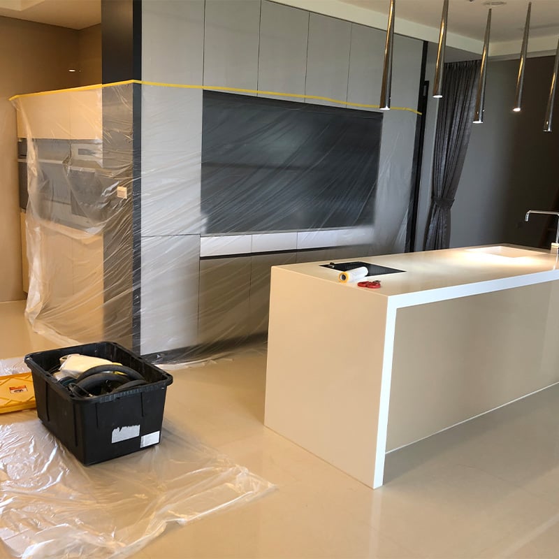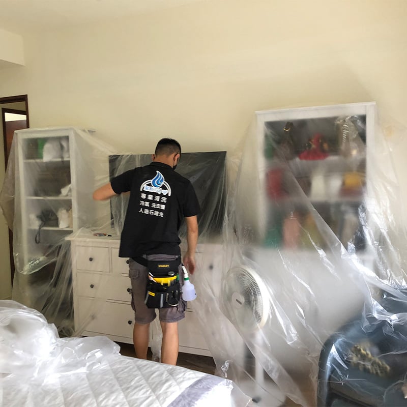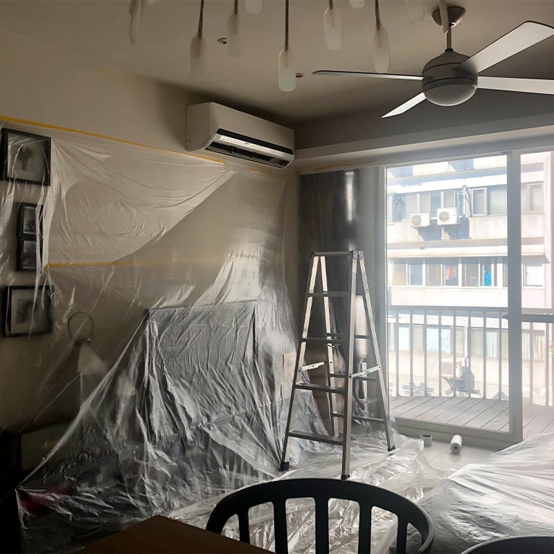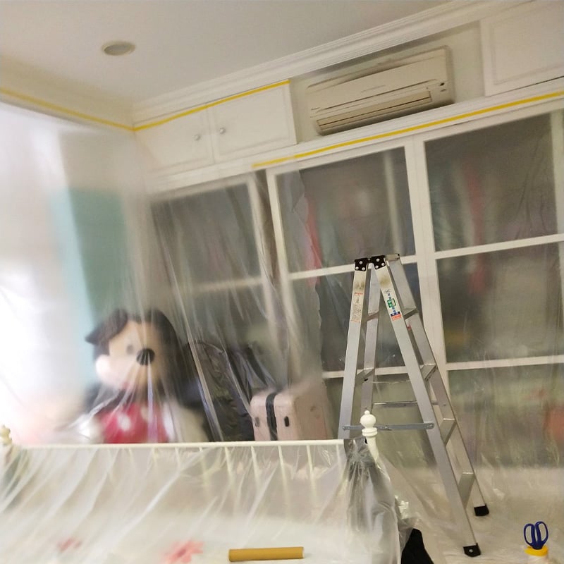 施工前:家具,沙發,床鋪,衣櫃會用養生膠帶保護!不用擔心家裡會弄髒。