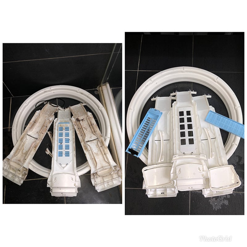 對於風速、冷度皆會有明顯改善,霉味、微小顆粒粉塵PM2.5,也會一起清除,由於熱交器(蒸發器)及貫流風扇(送風扇)集水盤洗淨了,因此不僅用電量會降低(回復近出廠時數值),過敏情況與滋生細菌霉菌的生物異味也會改善,尤其對冷氣的使用壽命也相同跟著提升。