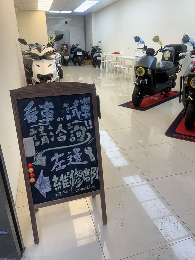 服務內容 EFI噴射維修保養 全車檢查 各廠牌機車維修保養 SYM、YAMAHA、KYMCO、SUZUKI、PGO 原廠保固服務 新車兩年內,請攜帶行照至本店,進行問題的查詢判斷 新舊車買賣 店內展示新車,購車優惠,分期零利率 代辦監理站業務 報廢、過戶、驗車 道路救援服務