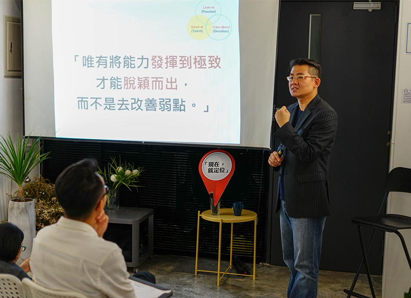 提供畢業前、退伍前、留學前、轉職前 、創業前、企業二代接班前、退休前等各年齡層的「人生定位」課程與一對一教練(Coaching)!