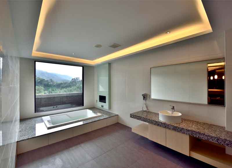 一大床、面窗、大陽台、大電視55吋液晶電視、VOD影片隨選系統、冰箱Mini吧檯、電茶壺、吹風機、沐浴、雙人氣泡浴缸、免費WiFi、安全門、獨立車庫、反針孔偷拍偵測系統、書桌、浴室液晶電視、臥榻、室內造景。