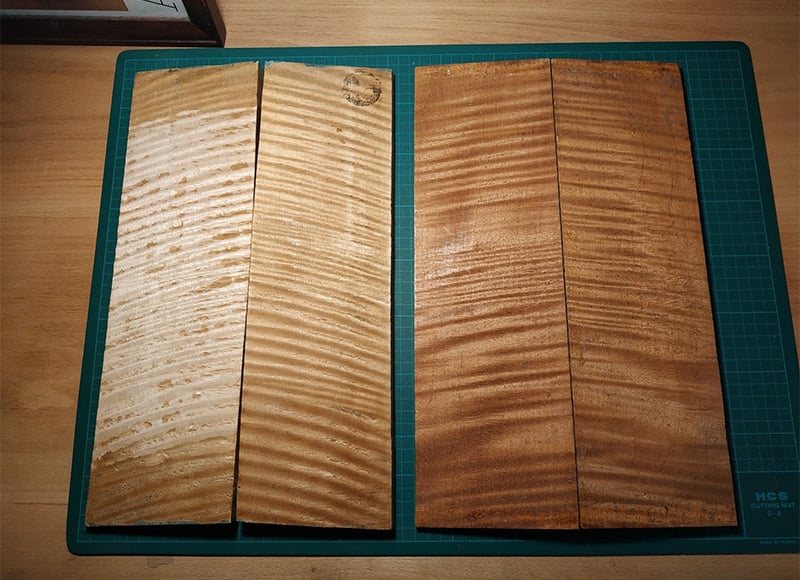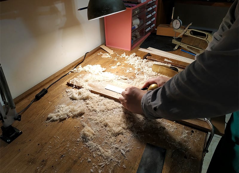 在木材的選擇上,只採用歐洲的優良木材商,選擇最理想裁切和紋理的頂級木材,在濕度控制的環境,花數年時間自然風乾,為之後的成品打下良好的基礎。
