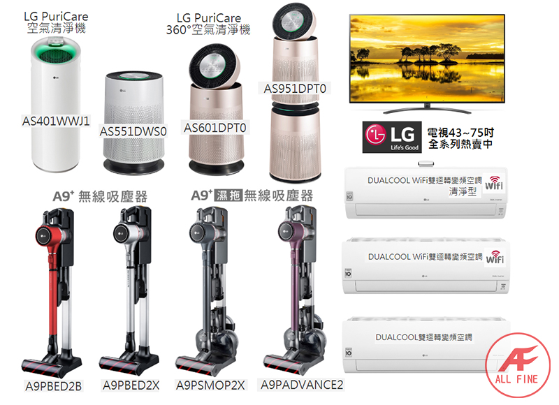 空氣清淨機+吸塵器+電視+冷氣