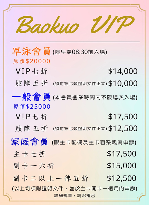 負責人洪秋田總教練,畢業於國立台北體專,國立台灣體院,他經營游泳池已近20年,一路從基礎做起,因意識到現代人生活壓力大又緊繃,希望藉由休閒舒服的清新環境,讓人身心靈放鬆;以前大家對室內泳池的印象是充滿氯氣,洪教練多年前就常與水質研究專家探討水質,再加上自己多年的經驗,專研於水質處理,即使不放過多的氯,也能讓泳池的水乾淨又具活水狀態,並與廠商研討不讓氯氣充斥在泳池內部空間,而影響人的呼吸道健康,因此來到寶闊幾乎聞不到氯氣,這也是洪教練一直引以為傲之處,洪秋田總教練的處事格言:要做得好很簡單,要一直維持很好不容易,也因此他一直認真的以嚴謹的態度,從未怠懈,為的就是讓貴賓盡情享受寶闊的好環境。