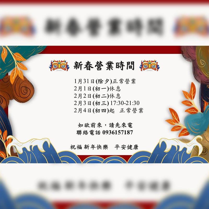 2022年農曆新年營業時間公告