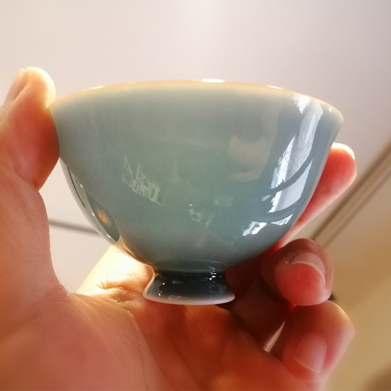 景德單色釉、手拉坯、薄胎、透光、高嶺土,1300度以上高溫燒結。