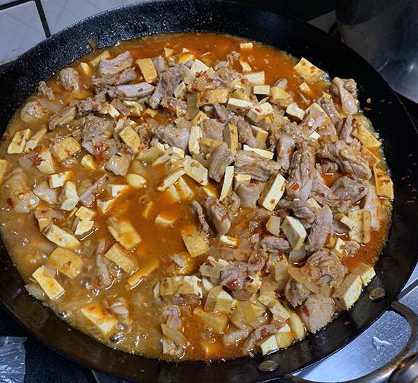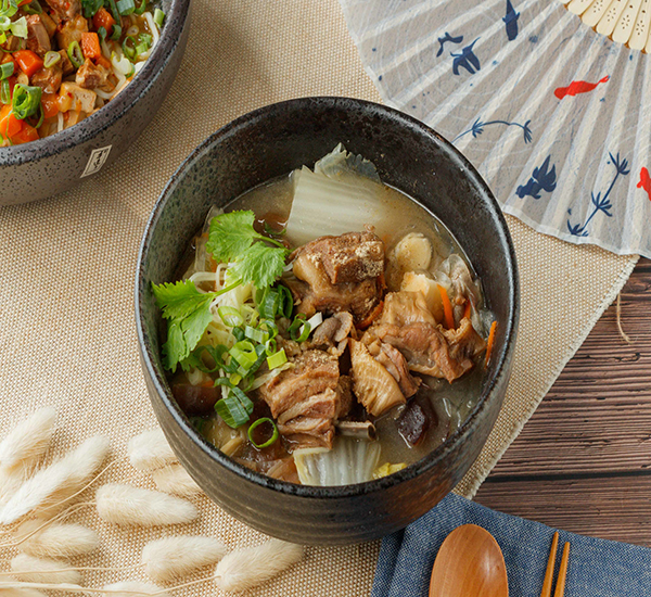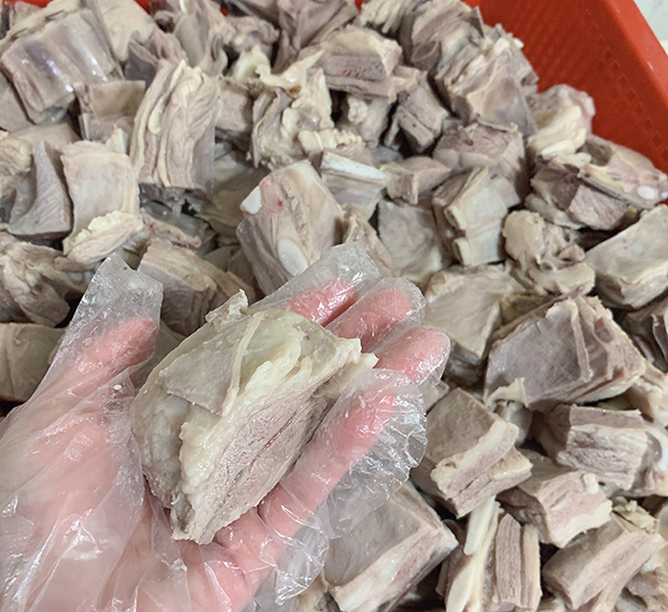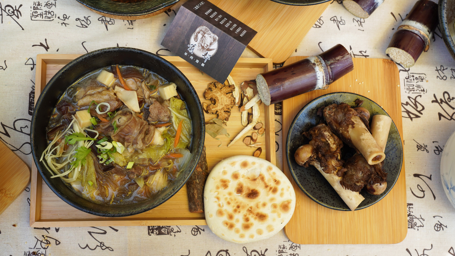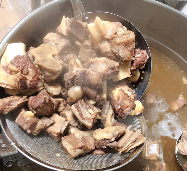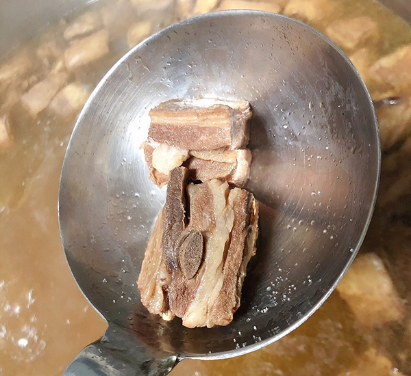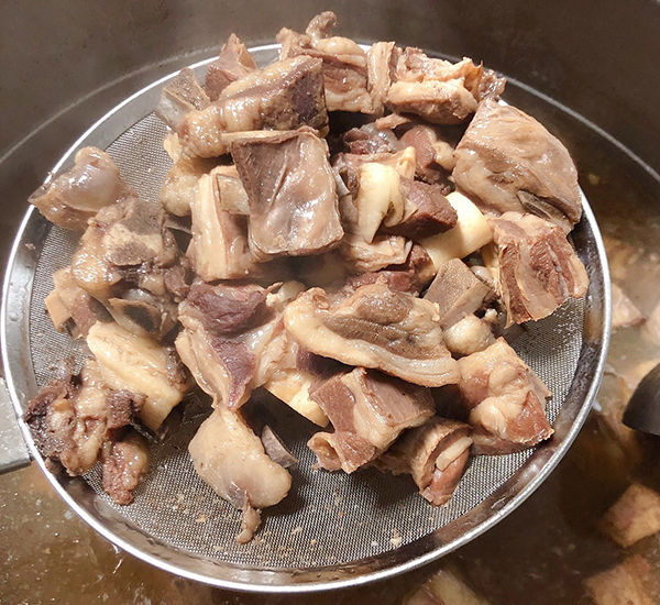 將饃以手剝或是切塊的方式煮入羊肉湯中搭配粉絲成為主食,帶骨的羊肉塊與剛剛好的油脂一口咬下,