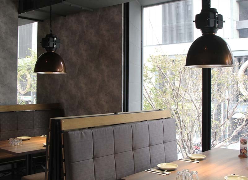 店內採簡約工業風,挑高天花板與完美音響,讓您在這的用餐時光可以優雅又新潮。