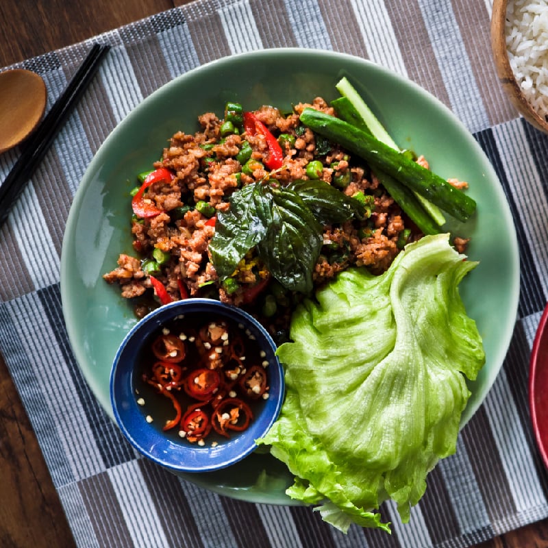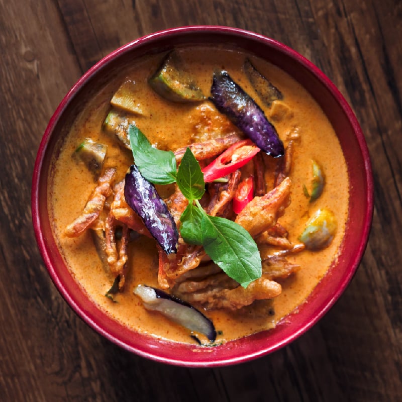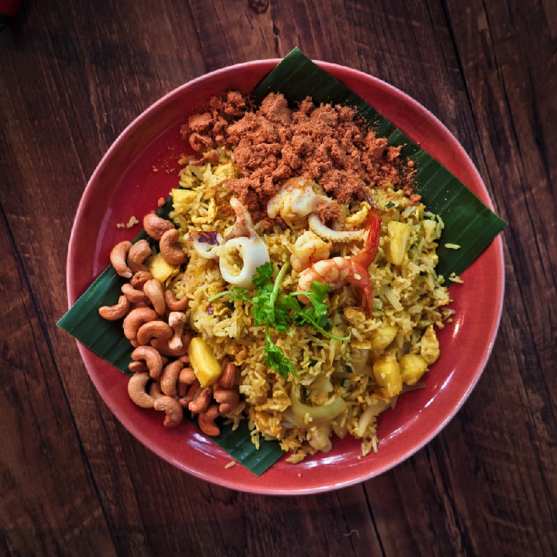 優選上等的泰國香米,形狀細長、澱粉含量較少,烹煮後散發濃濃的氣味,清爽有嚼勁的口感是讓人一口接一口的原因,配上口味濃厚的料理,紅咖哩、綠咖哩、打拋豬、軟殼蟹...在這裡,所有的味蕾都可以恣意釋放。