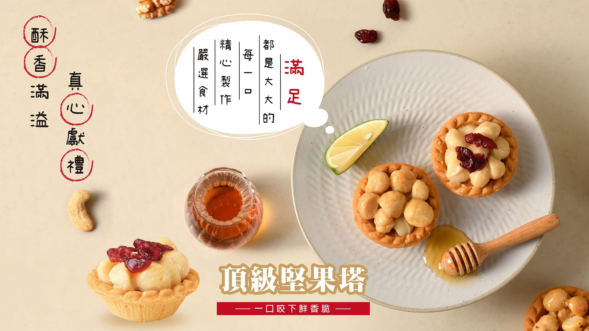 產品介紹 杏仁牛軋糖 蛋奶素 產品資訊 香蔥牛軋餅 蛋奶素 產品資訊 茶Q餅 蛋奶素 產品資訊 原味夏威夷豆塔 蛋奶素 產品資訊 蜂蜜檸檬夏威夷豆塔 蛋奶素 產品資訊 蒜香黑胡椒夏威夷豆塔 五辛素 產品資訊 原味腰果塔 蛋奶素 產品資訊 原味核桃塔 蛋奶素 產品資訊 手工餅乾禮盒 蛋奶素、五辛素 產品資訊 椰棗夏威夷豆潛艇堡 純素 產品資訊 南棗核桃糕 純素 產品資訊 芝麻核桃糕 奶素 產品資訊 富貴酥 蛋奶素 產品資訊 土鳳梨酥 蛋奶素 產品資訊 低溫烘焙堅果 純素 產品資訊