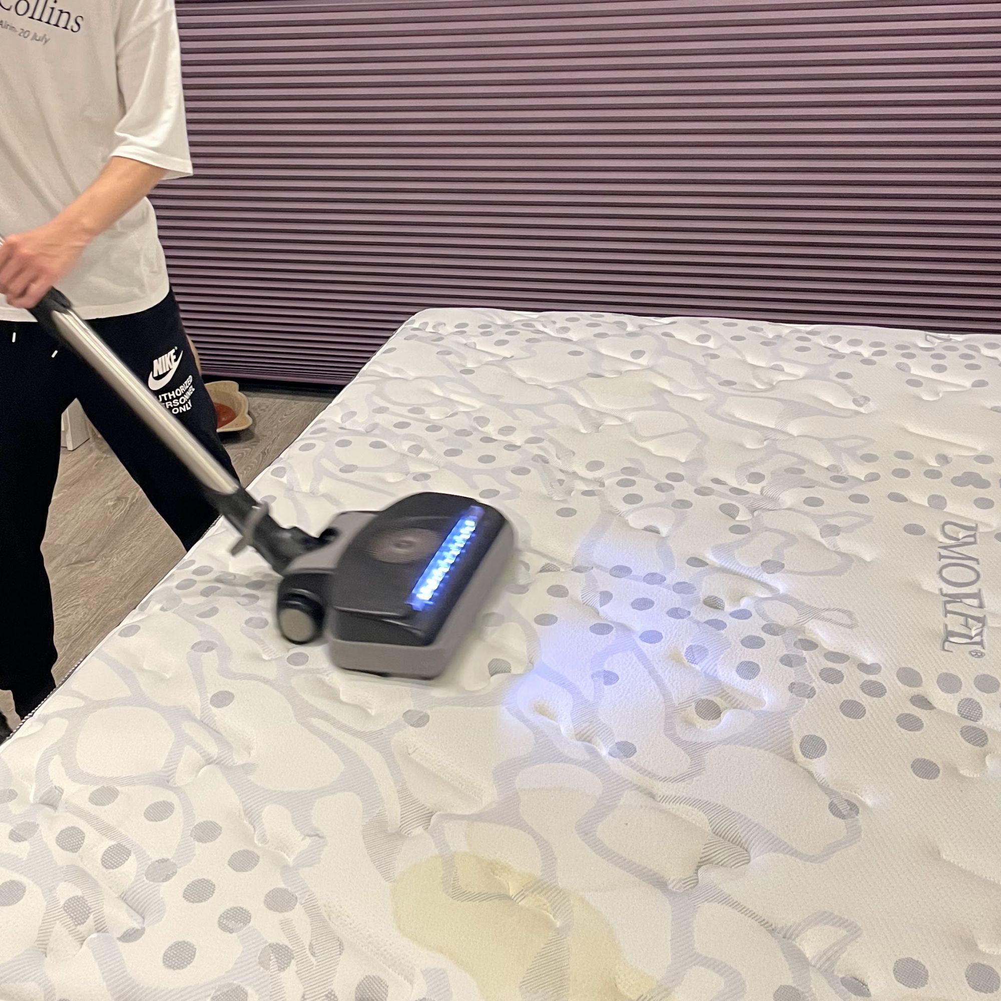 抽洗機清洗抽吸單面床墊,去除表面與深層髒污