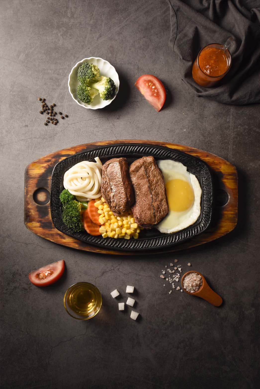 本店使用 原肉牛排➕上現磨黑胡椒和玫瑰鹽搭配不影響牛肉的原汁原味
